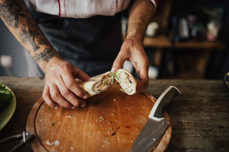 Whether you’re eating a sirloin, salmon fillet, bagel, or omelet, try cutting your food into small pieces before taking a single bite. In a recent Arizona State University study, participants given a cut-up bagel ate less of it than those handed an intact bagel. They also consumed less food at a free lunch served 20 minutes later. The researchers say pre-cutting food makes each bite more satisfying, thereby helping with portion control.