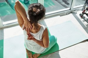 Then, place one hand on the opposite side and press slowly while tilting your head to your shoulder and stay in this position for 10-15 seconds, then change your hand. Do 3-4 reps on each side.